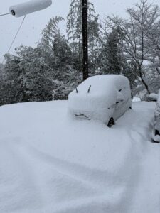 帰り際、雪がところどころ積もっているなーとは思っていましたが…